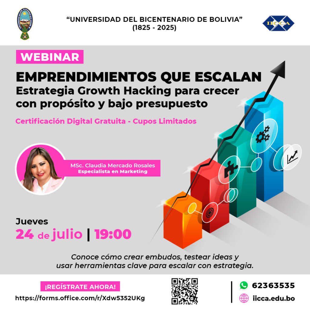 ¡Potenciá tu emprendimiento y hacelo crecer con estrategia! El IICCA te invita al WEBINAR GRATUITO: “EMPRENDIMIENTOS QUE ESCALAN: Estrategia Growth Hacking para crecer con propósito y bajo presupuesto” Con la MSc. Claudia Mercado Rosales, especialista en Marketing. Jueves, 24 de…
