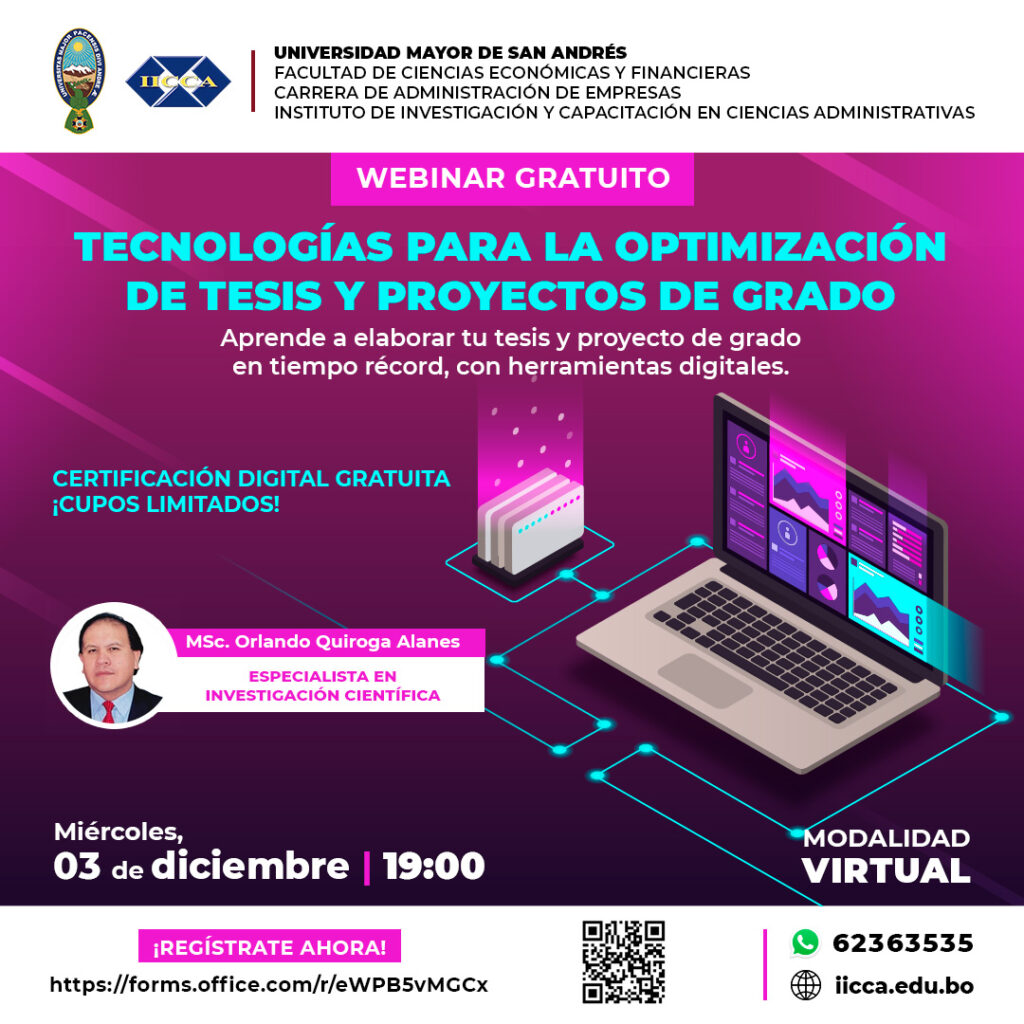 La tecnología ha transformado la investigación científica. ¿Estás utilizando las herramientas adecuadas para tu tesis o proyecto de grado? Te invitamos al webinar: "Tecnologías para la Optimización de Tesis y Proyectos de Grado". Una sesión de alto valor impartida por…
