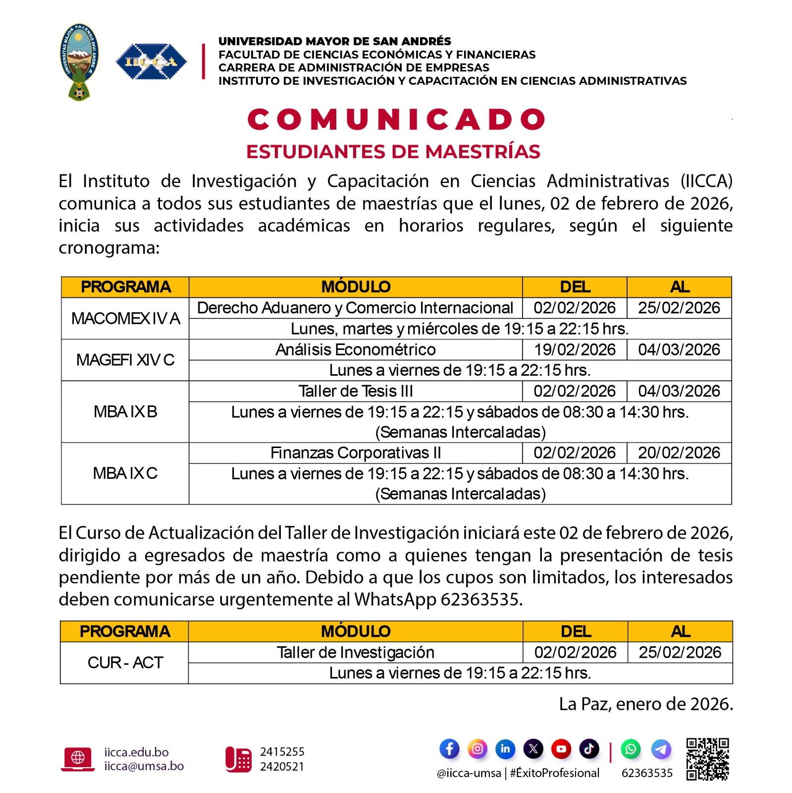 ¿Buscas una maestría que te haga destacar?En el IICCA, nuestras próximas maestrías te ofrecen una formación actualizada y alineada con el mercado laboral. ✅ Contenido actualizado✅ Enfoque práctico✅ Red de contactos profesionales Sé parte de los mejores. ¡Escríbenos al 62363535…