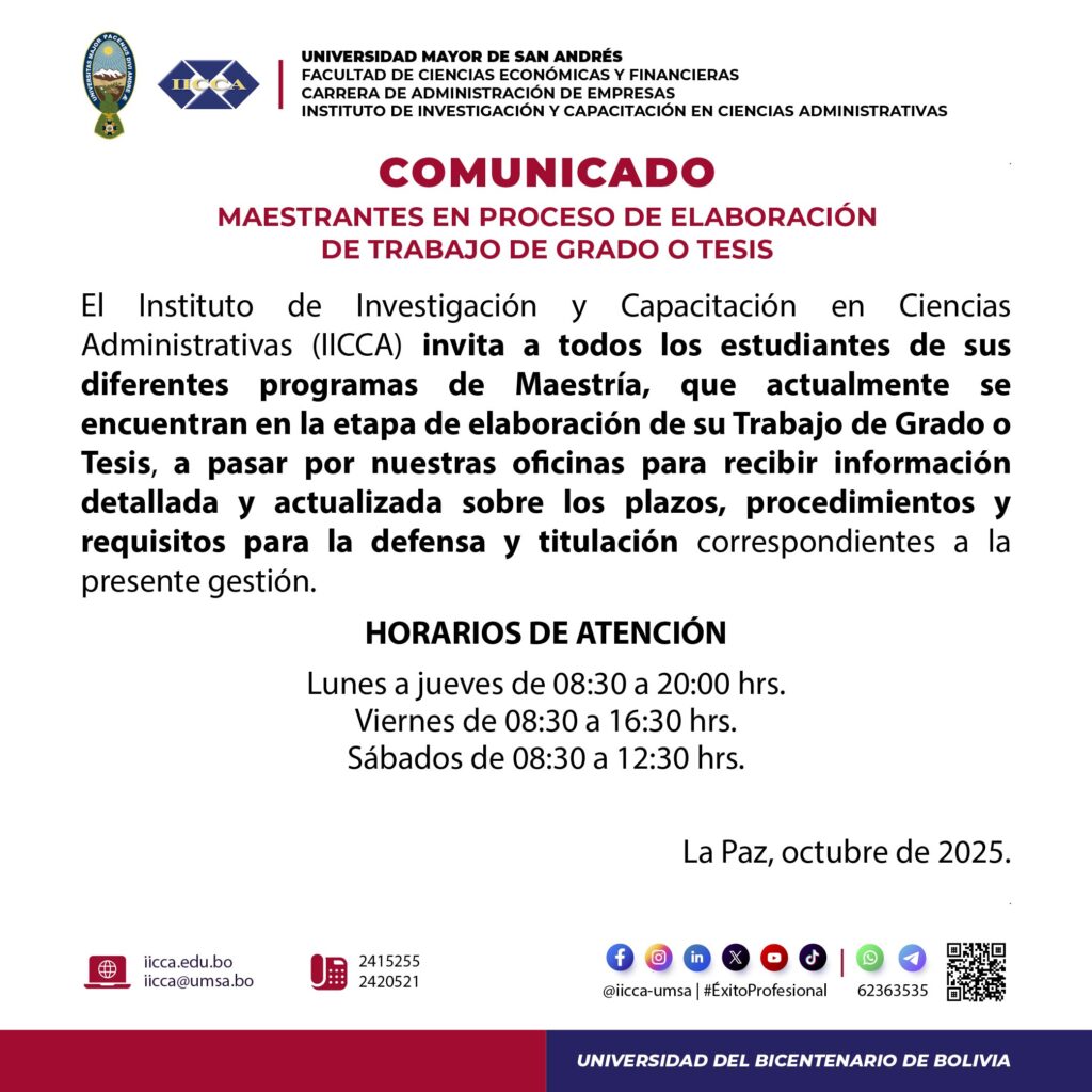COMUNICADO MAESTRANTES EN PROCESO DE ELABORACIÓN DE TRABAJO DE GRADO O TESIS 02/10/2025 DESCARGARCompartir: