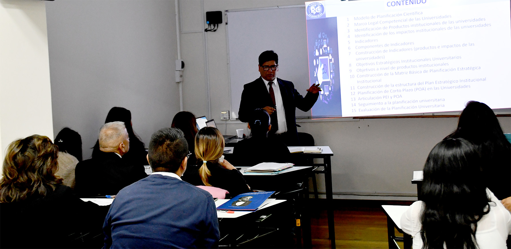 La bienvenida estuvo a cargo de la Directora de la Carrera de Administración de Empresas (CAE), MSc. Marisol Pérez Mollinedo, quien destacó la importancia de habilitar estos espacios para fortalecer el trabajo institucional. «Es un grato placer el poder recibirlos en casa», afirmó la MSc. Pérez, al tiempo que agradeció el esfuerzo de las autoridades por «dotarnos de herramientas importantísimas» que se aplicarán en la organización estratégica con una mirada a futuro.